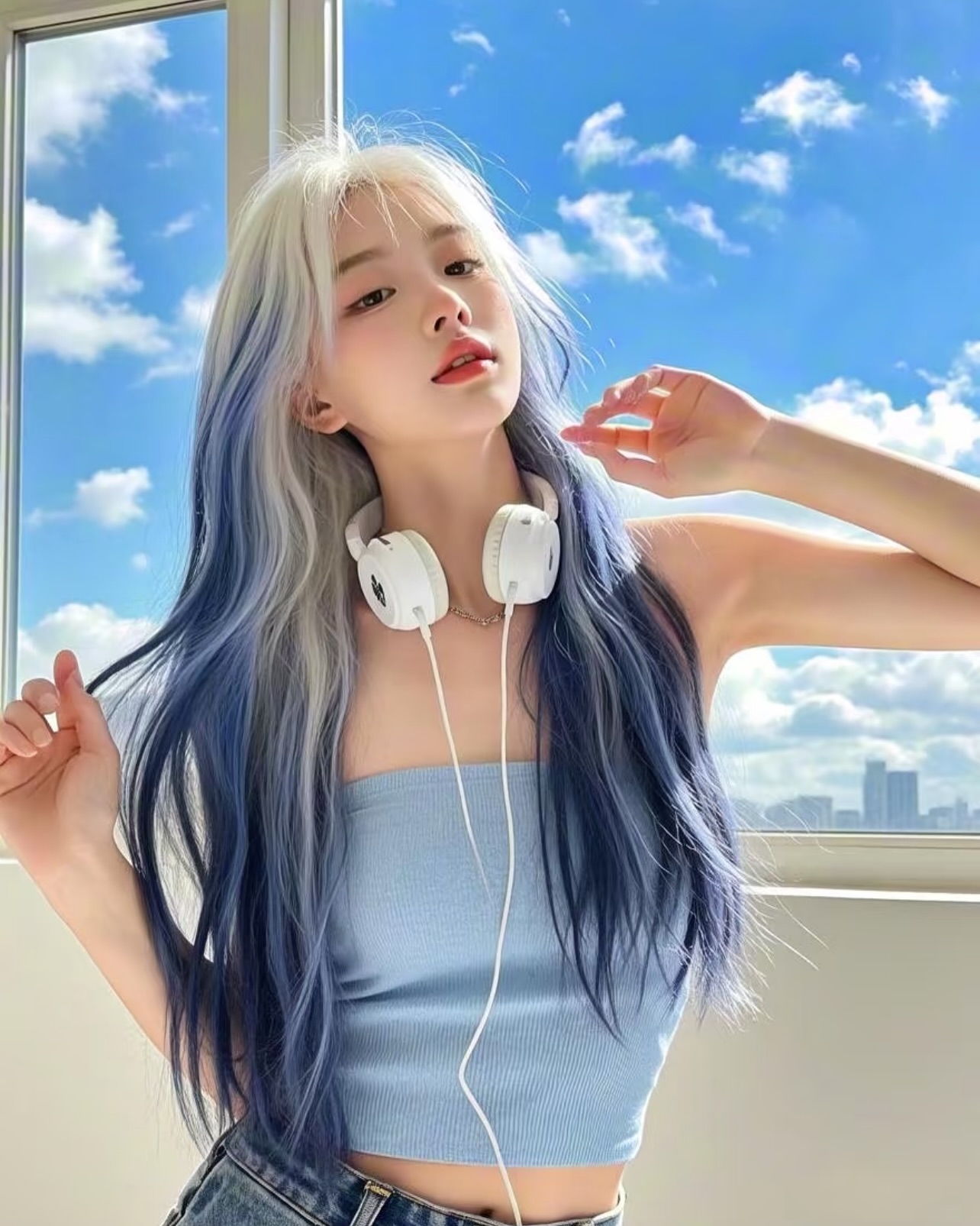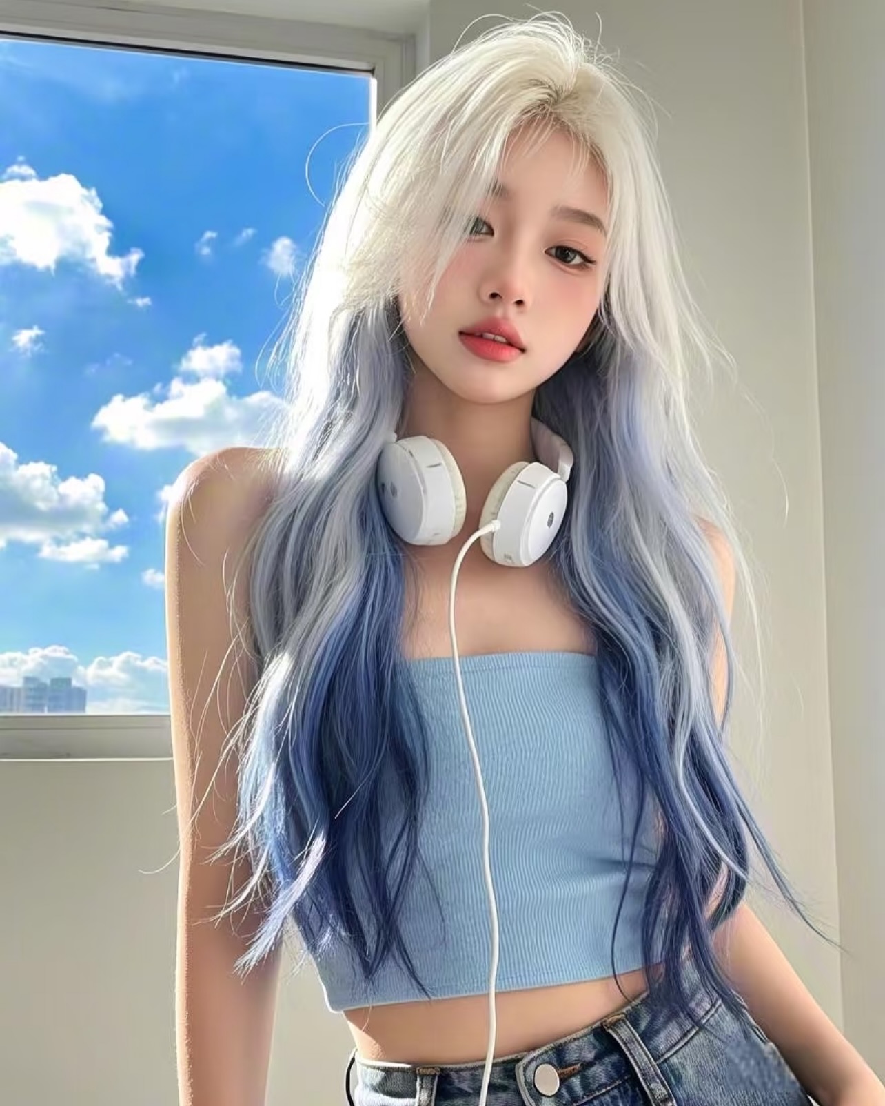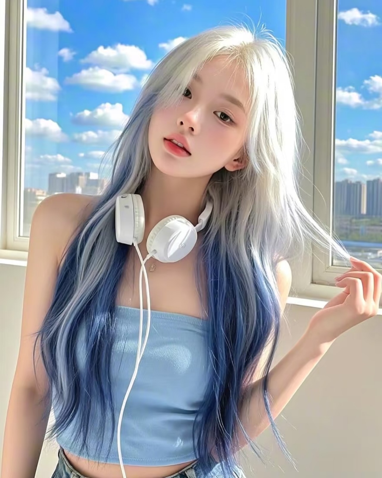 如何通过蓝白配色的穿搭与发色,展现独特的时尚品味?