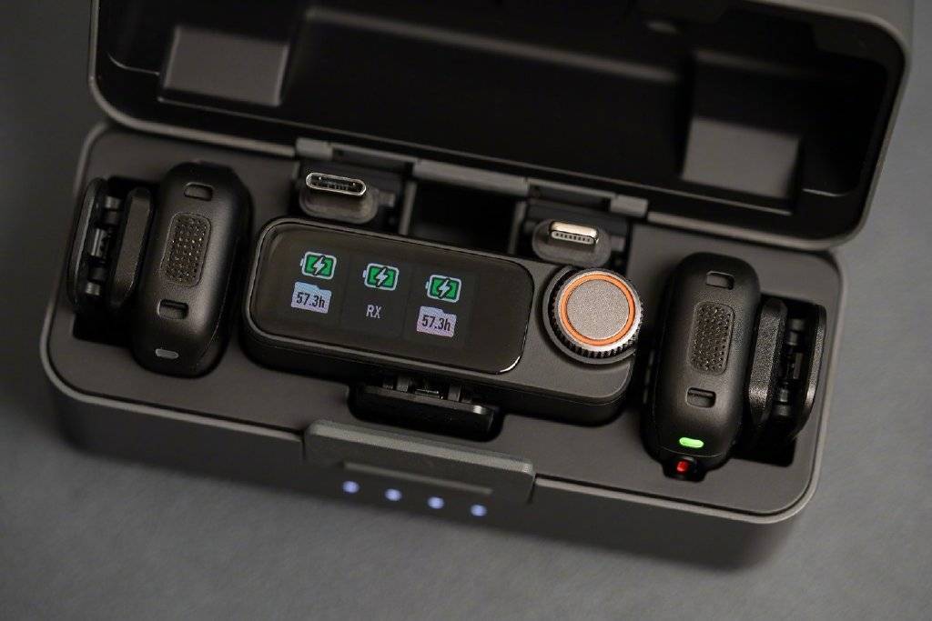 ● 续航与便携: 发射器续航约15小时,接收器约12小时,充电盒延长至50小时。支持USB-C边录边充,也可反向为手机或平板供电。但整体重量略高,长时间手持或移动拍摄会有轻微负担。