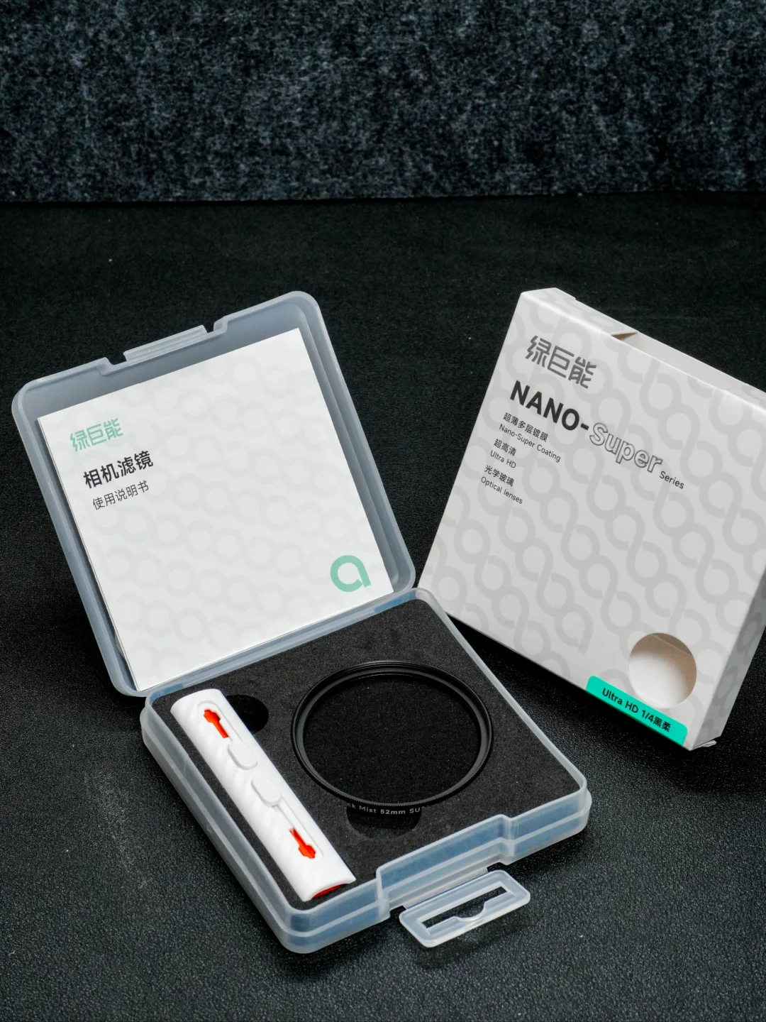 滤镜还配备了收纳盒,清洁笔和清洁布,非常贴心