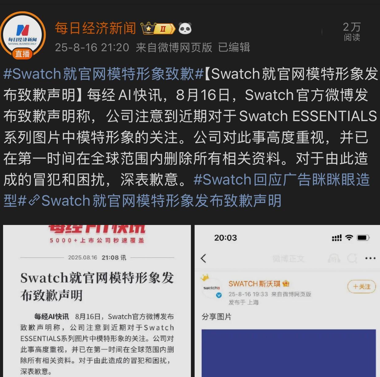 知名品牌手表模特辱华造型翻车,估计斯沃琪(swatch)在华销量又要受挫了。最近