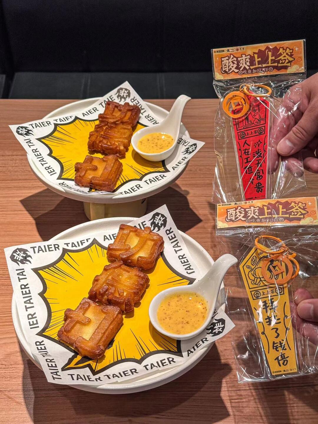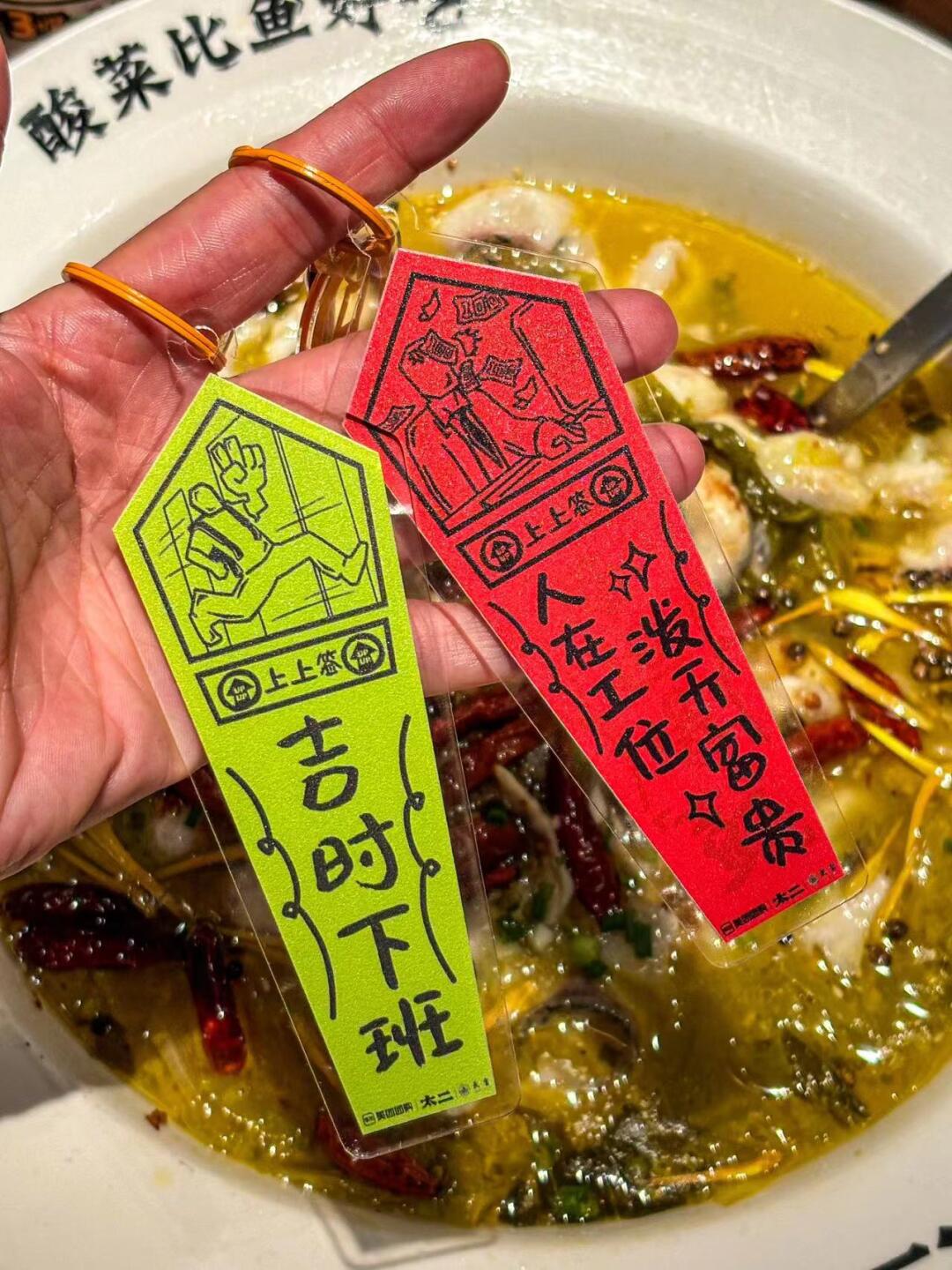 家人们 太2️⃣酸菜鱼上上签套餐get啦 酸菜鱼+文字烧*1+上上签*2 文字烧:功德+1,好有趣! 五颜六色↑↑签是随机喔 🐛🐛🐛🐛啊