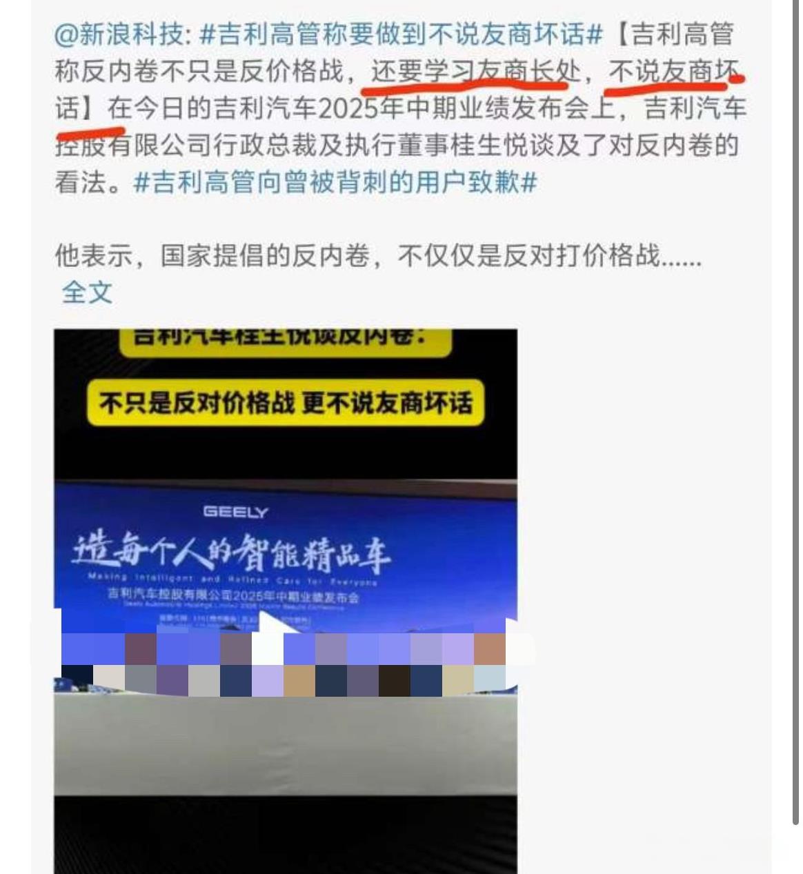 友商:“反内卷不只是反价格战,还要学习友商长处,不说友商坏话!” 这话的意思等于