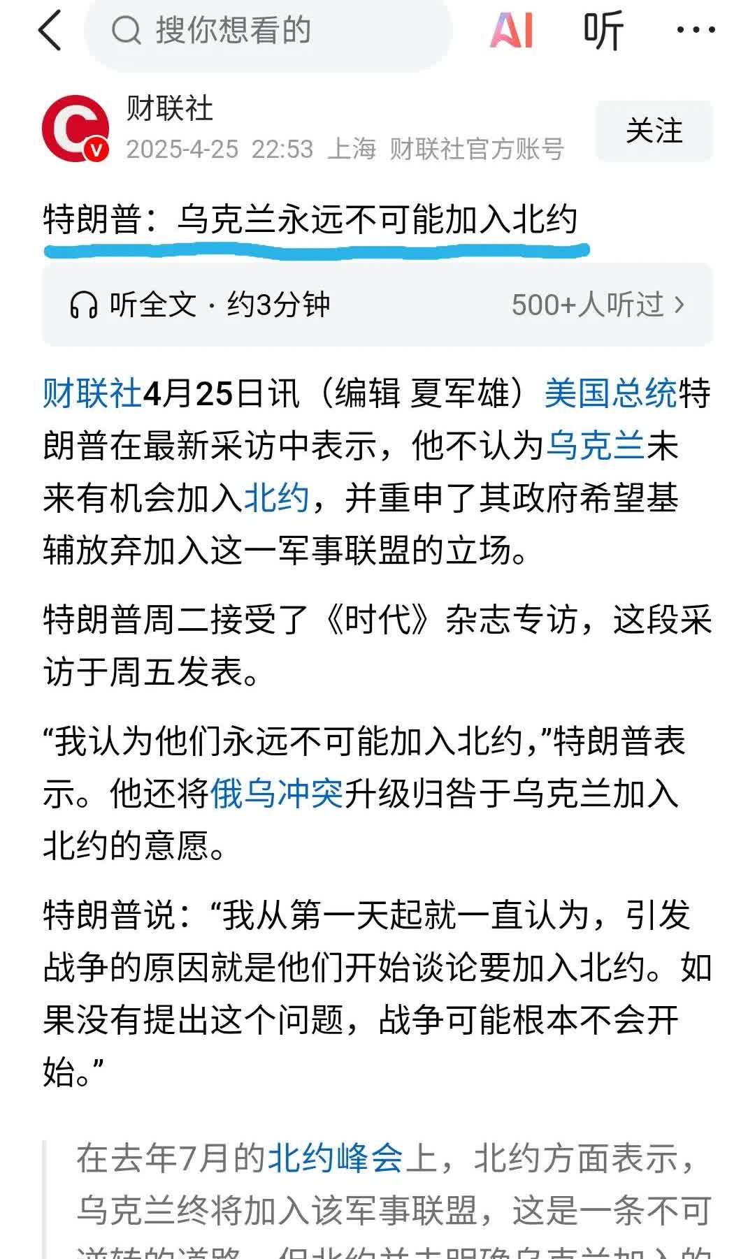 特朗普真有诚意的话,承诺与乌克兰结为军事同盟国,类似美韩、美日和美菲等一样,泽连斯基也不用昼思夜想去加入北约了,免得大家为难。 说到底,得到老美庇护的国家,就让大俄放弃去踏足扩土,北约也因有老美主导,中小国家才有安全感。 既然如此,欧美俄三方何必数年都苦苦纠结于乌克兰加入北约呢?