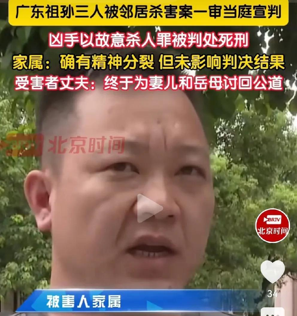 #精神分裂症患者杀害祖孙三人获死刑# 昨天,“广东廉江祖孙三代被杀案件”开庭。