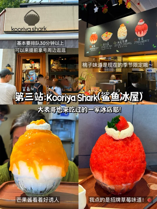 被大表哥种草的一家冰店,招牌是草莓🍓和桃子(夏季限定),冰是现做的,一口草莓果酱一口绵绵冰,再配一勺鲜奶油,口感超丰富