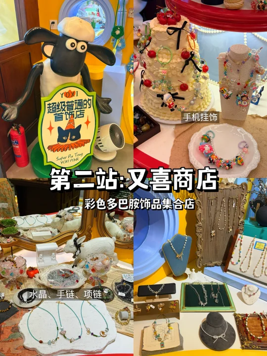 一家多巴胺复古首饰集合店,项链手链耳饰都有,还有帽子发圈都可可爱爱的