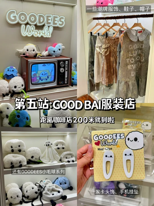 咖啡厅往前走200m就是小白的服装店啦,有各类潮牌衣服鞋子,还有头饰挂坠,店内审美很好,拍照也出片