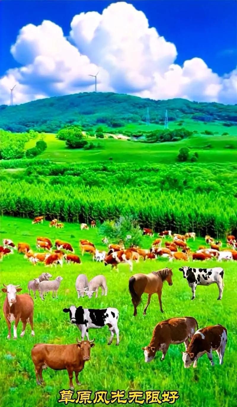【草原牧歌】 在广袤无垠天地间, 美丽草原似绿毡蔓延。 牛羊若云朵,满坡轻绽,
