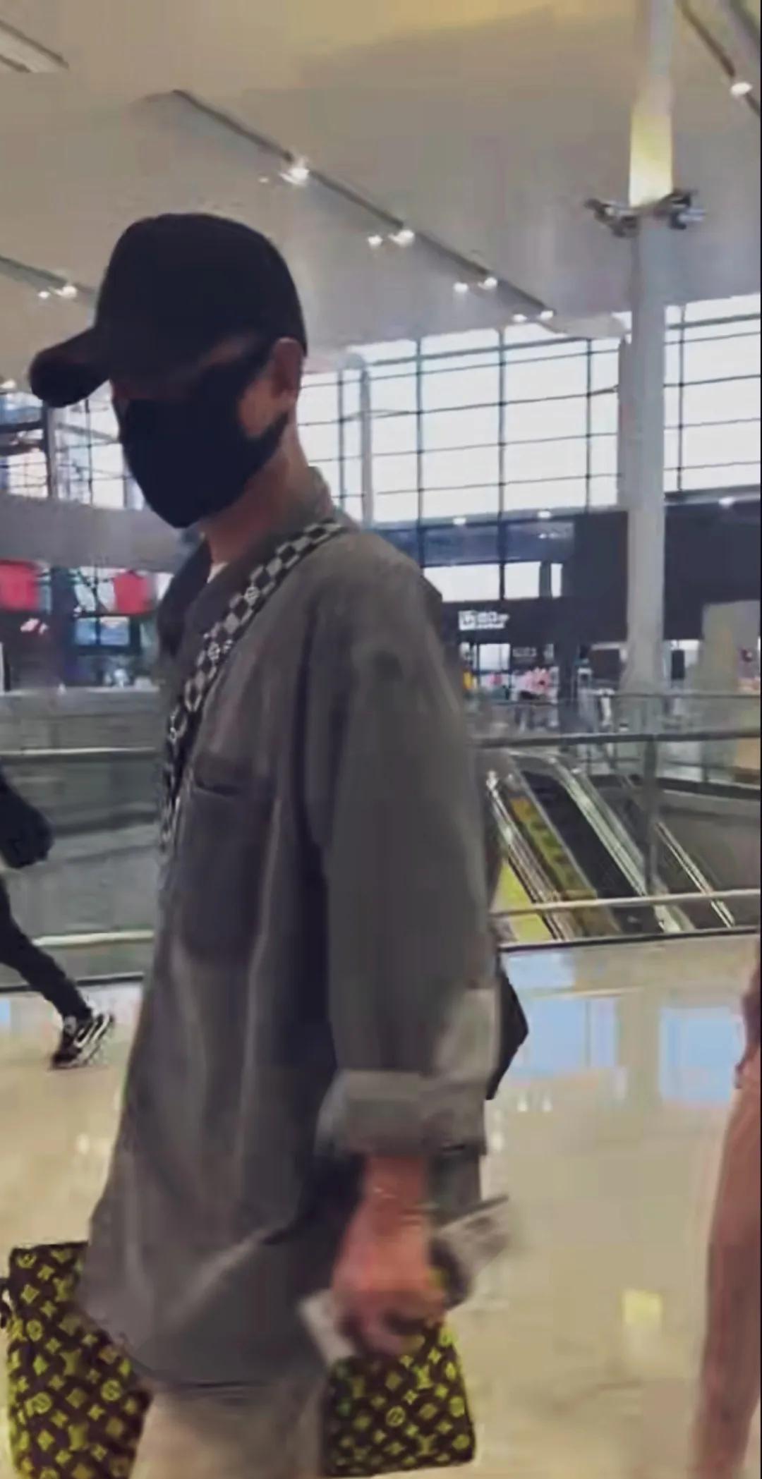 文章与两个女儿现身机场,文章身材消瘦,戴着口罩帽子,低着头走路匆匆。两个女儿手牵