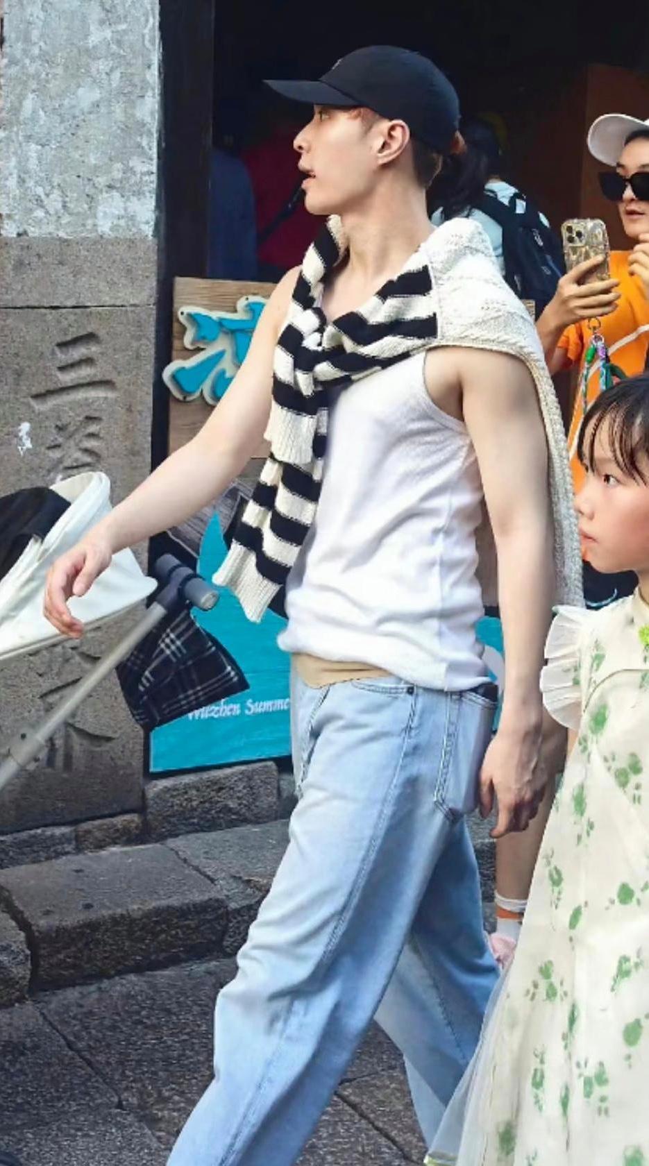 张艺兴在浙江乌镇逛街被偶遇,他穿着白色背心,看起来很瘦,皮肤非常白皙,很有少年感,确实挺帅气!
