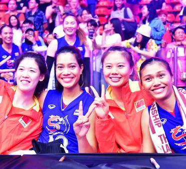 在中国女排和泰国女排的热身赛的场边,龚翔宇和泰国女排接应平皮查亚、主攻兼队长阿耶查拉蓬亲密合影。在泰妹的映衬之下,一贯被人说皮肤黑的龚翔宇,都觉得是好白了。