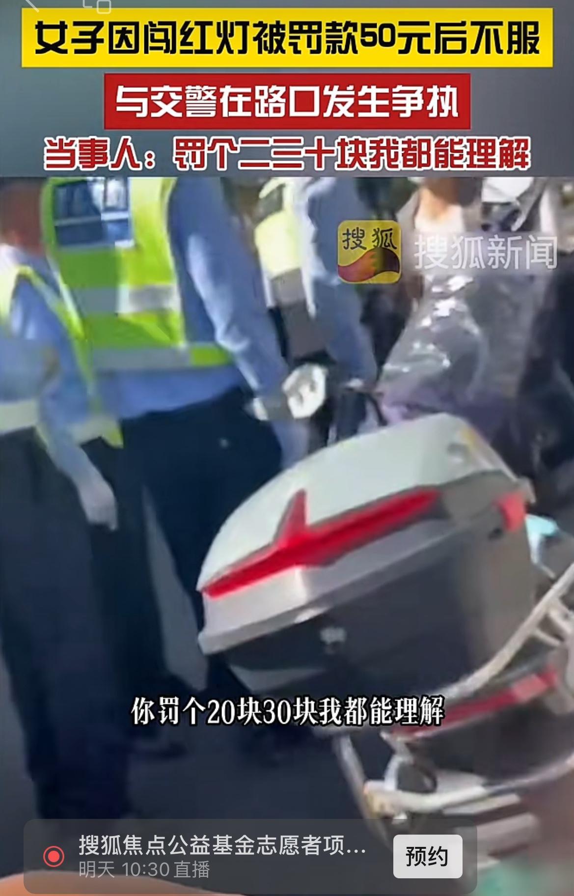 云南昆明一女子骑车闯红灯被交警罚款 50 元。女子对交警说:“50啊,你就是花子,你就是强盗,50块钱,你罚个20,30元我都能理解,可你罚款50啊,50啊,有这么好赚50的吗?我是没钱,也比你强啊,你就是花子,你们人民警察不是为人民服务得吗?我不是老百姓吗?你可以教育一下啊,你罚个20,30元我都可以接受” 尽管交警极力解释说:“这是规定,你理解不了,就理解不了,谁让你冲着过来,老百姓也不能闯着红灯过来影响别人,教育,教育,罚你20元,你要说罚5块”, 昆明这起闯红灯罚款纠纷,简直是把“规则面前人人平等”的道理摆到了明面上。女子骑车闯红灯被交警罚50元,张口就喊“你是强盗啊”,抱怨50元太难挣——可遵守交通规则,难道不是比50元更基本的“生存成本”?规则的意义,本就是保护每个“人民”的安全,今天对闯红灯睁一只眼闭一只眼,明天可能就有更多人因无序通行受伤。 交通罚款从不是为了创收,而是用小小的惩戒,敲响安全警钟。50元买不来一次侥幸,却能让人记住:红灯面前,没有特殊的“人民”,只有需要共同守护的秩序。更是对每个路人生命安全的负责。 这波必须得站交警!闯红灯本身就是违反交通规则的行为,罚款50元是有明确规定的,并不是交警随意定价。女子先是质疑罚款金额,甚至口出不逊,之后又拿“人民警察为人民”来辩解,却忘了“人民”更该遵守规则——遵守交通规则既是对自己负责,也是对他人安全负责。 交警那句“人民也不能够闯红灯”直戳要害,而“罚20、30你也会嫌多”更是点出了问题本质:她不是觉得50元真的多,而是不想为自己的违规行为承担后果。遵守规则不分金额大小,正视错误才是该有的态度。 “人民警察为人民”,前提是每个“人民”都得守规矩。总不能一边享受规则带来的安全,一边又想凌驾于规则之上。交警说得在理:今天让了20、30,明天就会有人嫌5块、10块多。执法若成了讨价还价的生意,规则的严肃性何在?遵守交规是本分,真觉得50元“太贵”,下次乖乖等红灯就好。 新闻图片来源:搜狐视频2025年8月20日发布