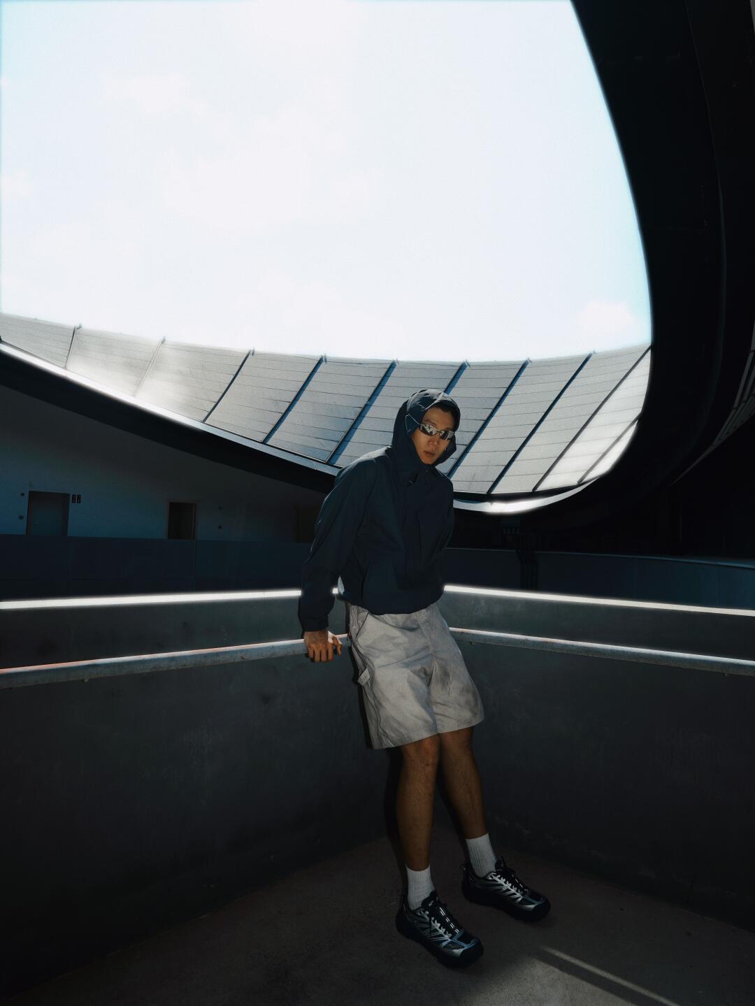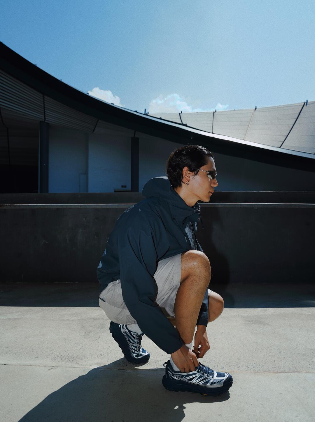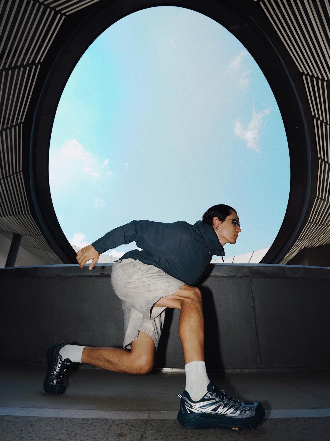 踩着 MAFATE SPEED2 新配色站在磁悬浮道边缘。