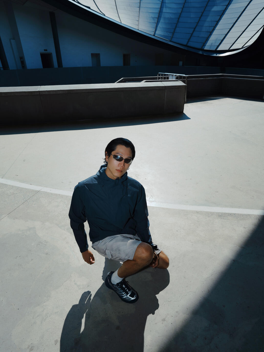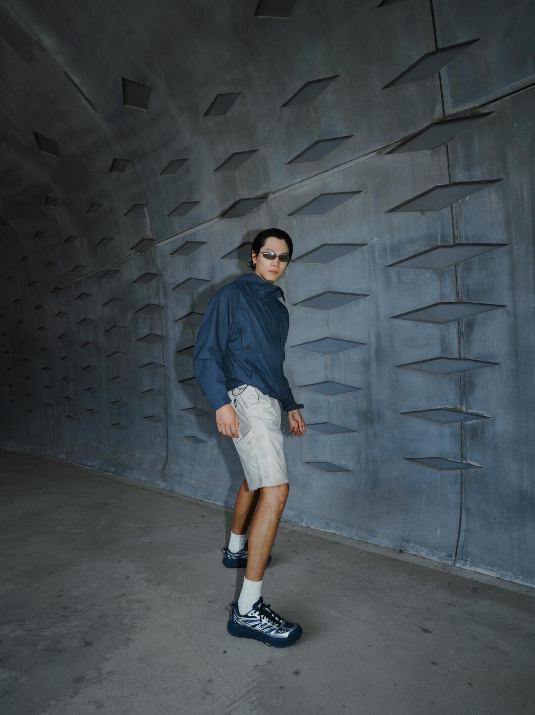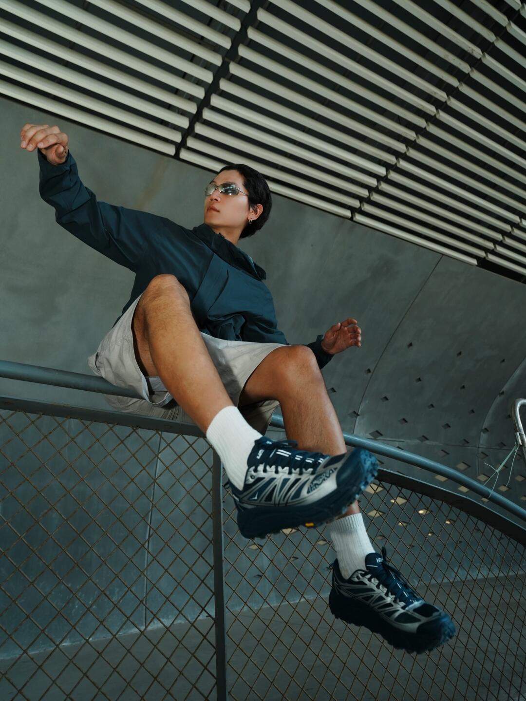 踩着 MAFATE SPEED2 新配色站在磁悬浮道边缘。