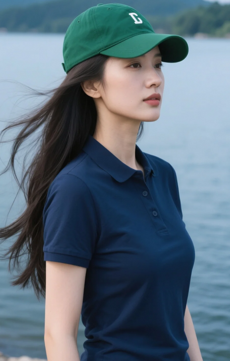 墨蓝配湖蓝,人与景融成一幅冷色调大片