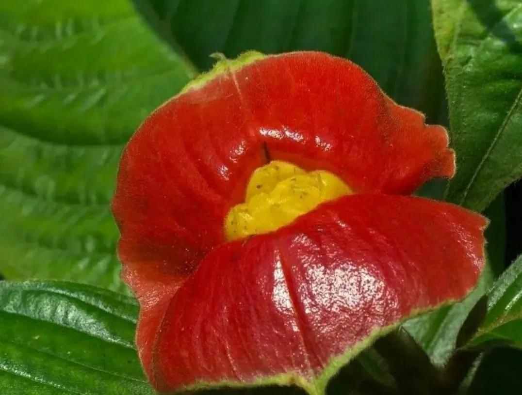 神奇的热带植物嘴唇花 大千世界,无奇不有,有一种花卉 花色鲜红,造型奇特,因形状