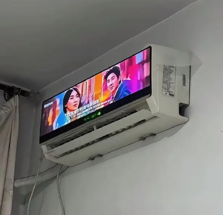 想出这个设计的人,真是个天才! 空调电视二合一,直接省了买电视的钱! 不过就是看电视得仰头,时间长了不舒服