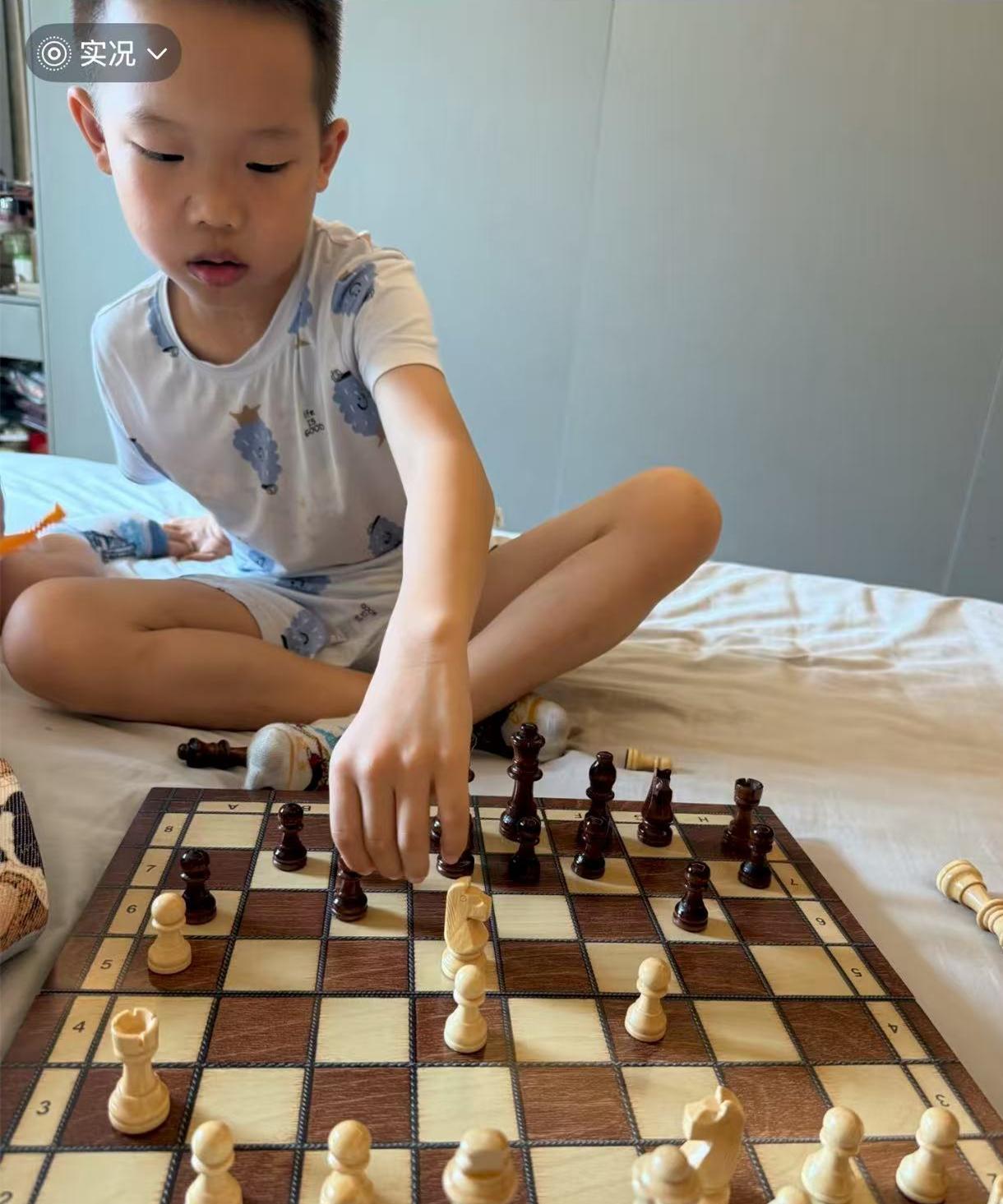 德云社烧饼在家带娃,陪大儿子烧麦下国际象棋被网友嘲笑,玩得明白吗?烧饼一家被称作