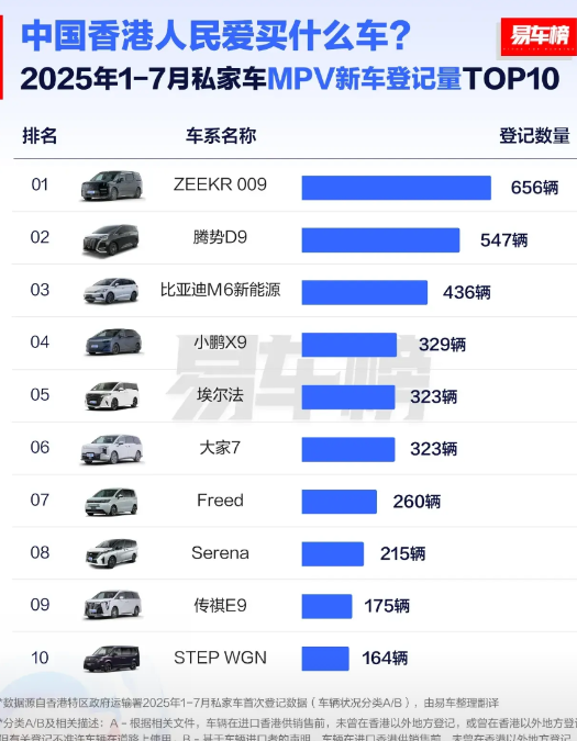 1-7月份香港人民爱买的MPV,日系车大溃败。