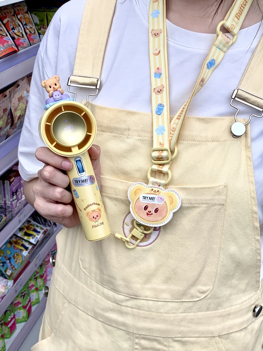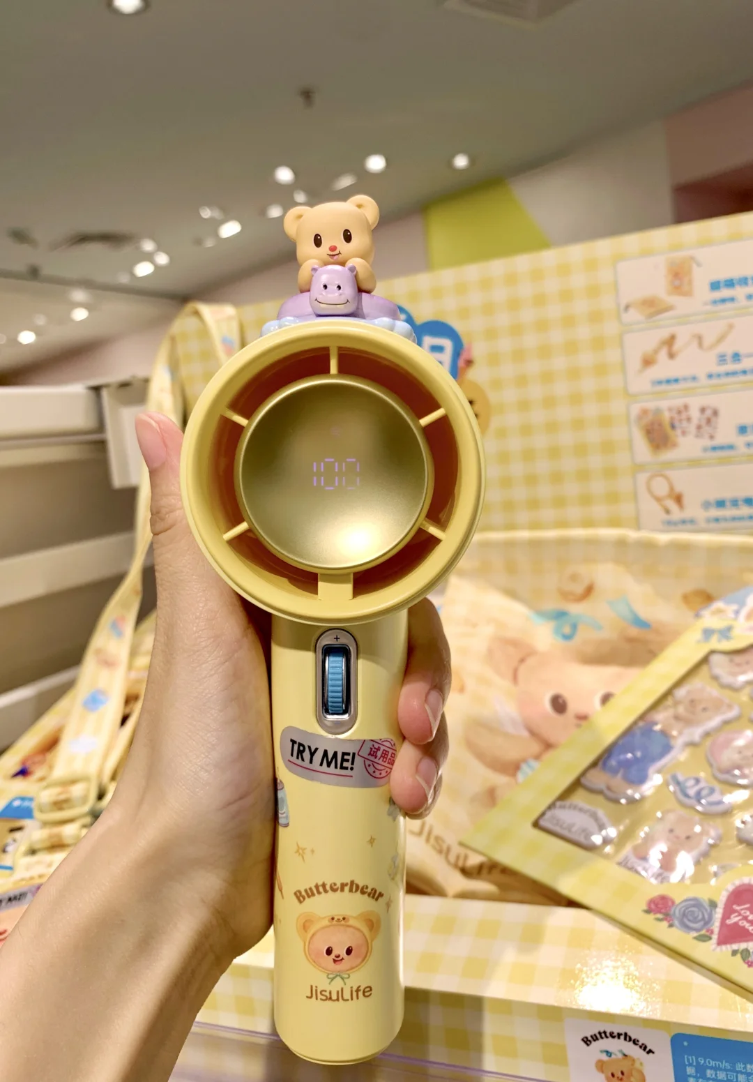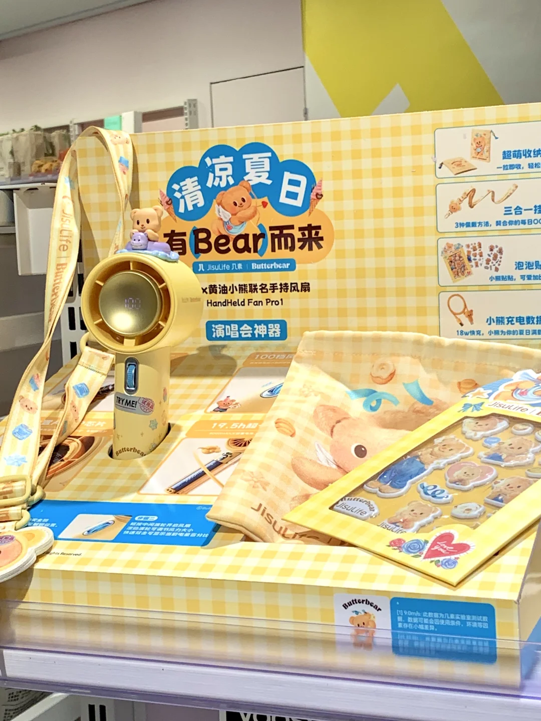 逛静安大悦城kkv时发现几素联名款黄油小熊风扇了啊啊啊可爱![棒R] 之前一直用的是普通版几素小风扇,100档风力超级大,而且续航19h也很持久,现在配色还变得超级可爱了,还有黄油小熊的全套周边!感觉平时出街当个拍照道具也很好~