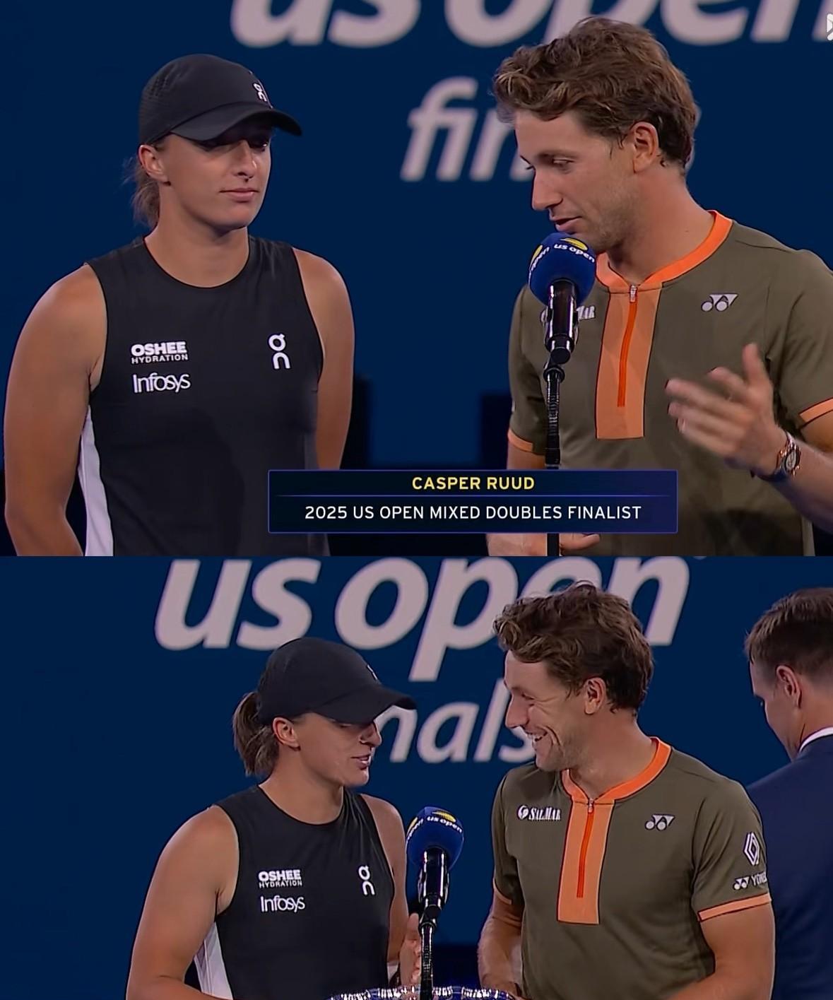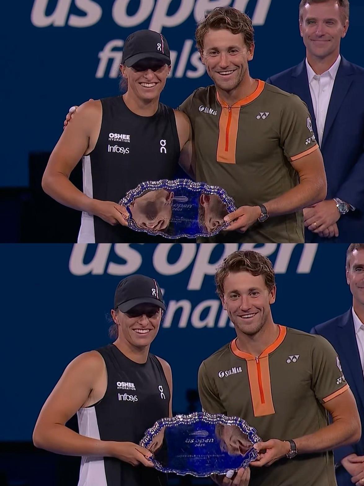 美网 2025 混双决赛,埃拉尼/瓦瓦索里这对意大利组合大战3 号种子斯瓦泰克/鲁德鏖战三盘… 最后决胜盘抢十 10-6 拿下,比分为 6-3、5-7、10-6,成功实现卫冕。 这已经是他俩一起拿到的第三个大满贯混双冠军咯… 恭喜斯瓦泰克/鲁德拿到了个 Tiffany 的盘子当作奖品~ 鲁大师估计都习惯了哈哈,“又是盘子”。 颁奖的时候,他们俩一直在后面小声研究盘子,估计在讨论给谁! 不如把盘子给斯瓦泰克吧,鲁德后面肯定还有更多机会拿… #晒图笔记大赛#
