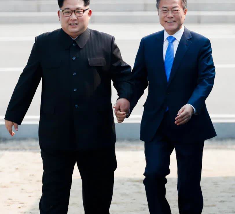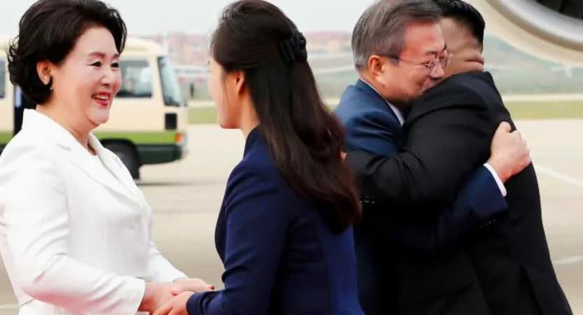 这样亲密的场景很难得吧! 文在寅确实推动缓和了南北关系!