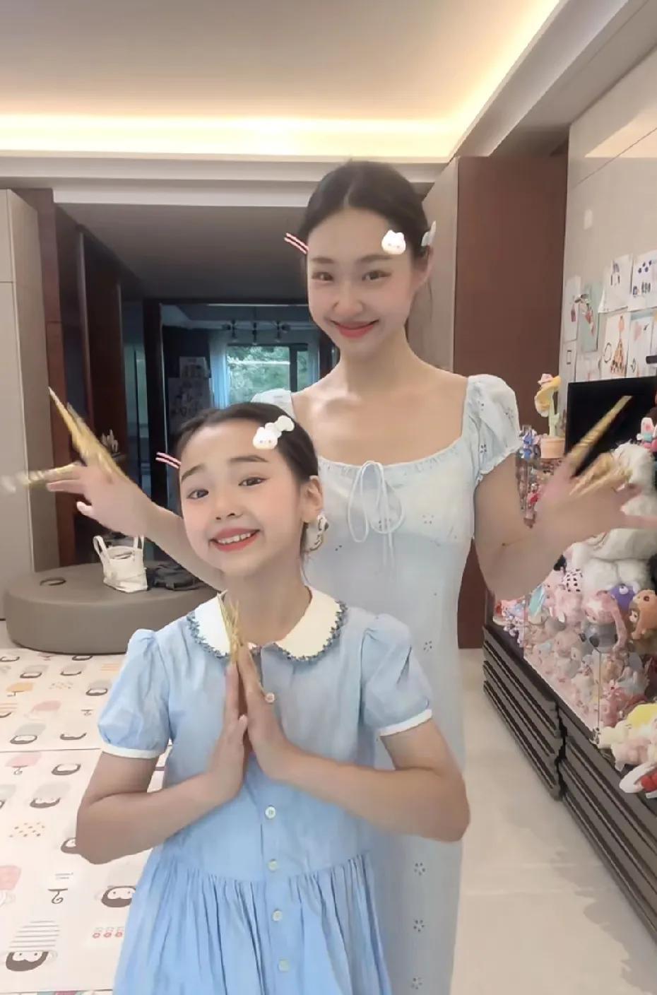 管乐和小酒窝同框跳舞,管乐这是无痛生娃啊,亲生的都未必这么像,也看得出来是小酒窝家里,管乐家里不可能有地方站着跳舞