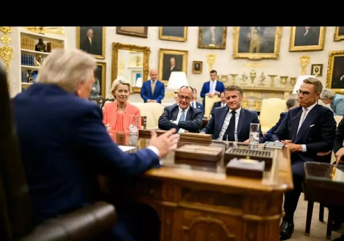 特朗普鸟枪换炮了,越来越拽了。 第1个总统任期里,他像犯了错一样,被一群大首领质问。 第2个任期里,他像审犯人一样,让几个欧洲国家的大首领坐在他面前。 只是第1张相片上的几个人都消失了,换了另一批人。 安倍被杀了,默大婶下任了。只有马克龙还在坚挺,不但坚持活着,还在总统任期里,不过美国跟法国总统只能坐两任,马克龙会跟特朗普一起下台,而且下台的还比特朗普早。