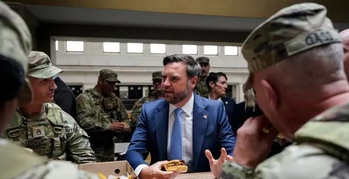 万斯与国防部长皮特·赫格塞思、白宫副幕僚长和国土安全顾问斯蒂芬·米勒访问联合车站查看华盛顿清理行动进展,并与国民警卫队一起吃汉堡。