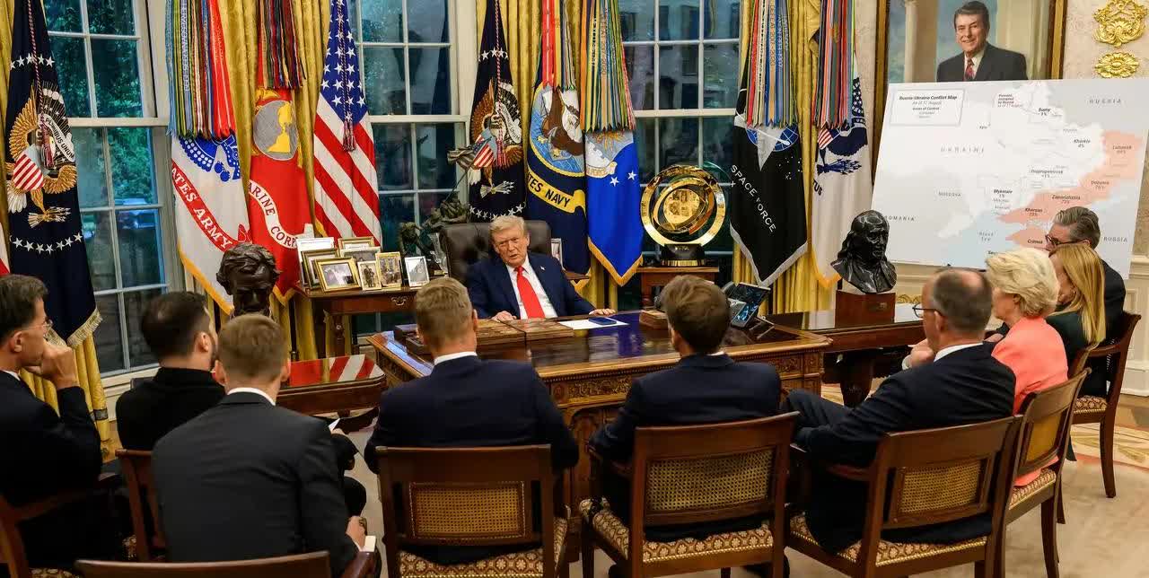 川普和一群小弟开会 特首领在训话,国务卿卢比奥只有站着的份。 欧盟把自己看得过高了,结果就是给美国提鞋的。美国告诉你了,你照做就是了!