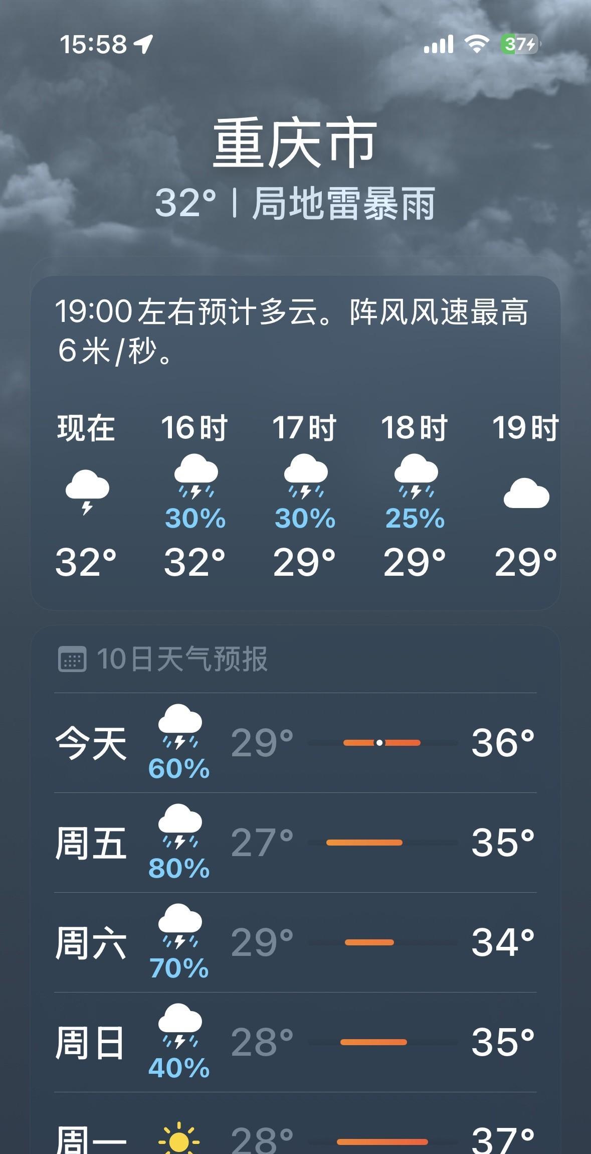 雷阵雨,局部大雨,真的要来重庆啦!8月21日,星期四下午4点,重庆主城区,大家看看头顶或者四面八方的天空,是不是感觉这些白云或者乌云,即将电闪雷鸣?!哈哈哈!今天傍晚或者深夜,重庆主城区及周边,不均匀的,局部的,奔跑的雨……真的要来啦! 重庆人,未来几天雨水都比较多,不适合看蓝天白云,不适合看日出日落,不适合看朝霞晚霞……应该是不适合的! 不过,下周,40度高温秋老虎将会返场大促几天!哈哈哈! #光线摄影世界曾兰谈天说地# #头号创作者激励计划#