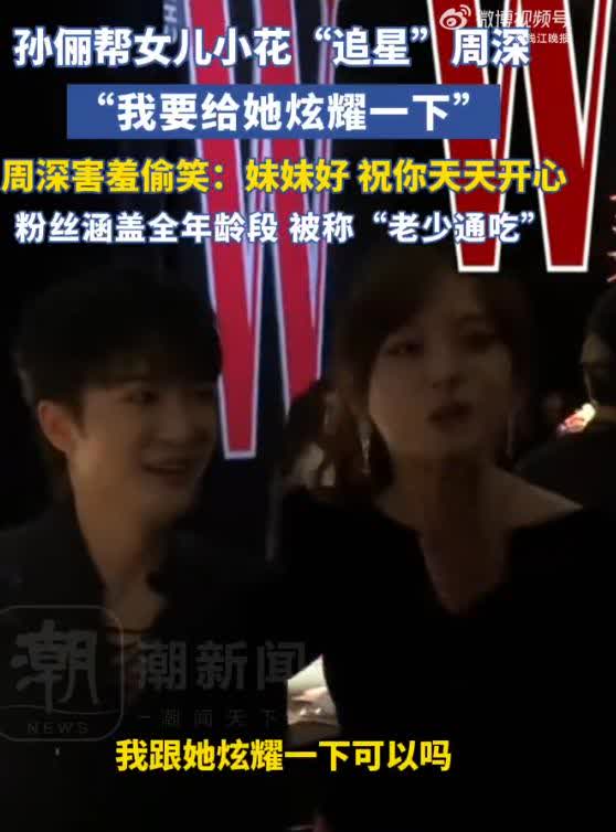 孙俪帮女儿追星周深 近日,孙俪与周深在盛典后台相遇,孙俪帮女儿小花追星周深,说“我要给她炫耀一下”,周深对着镜头说“妹妹好,祝你天天开心!”