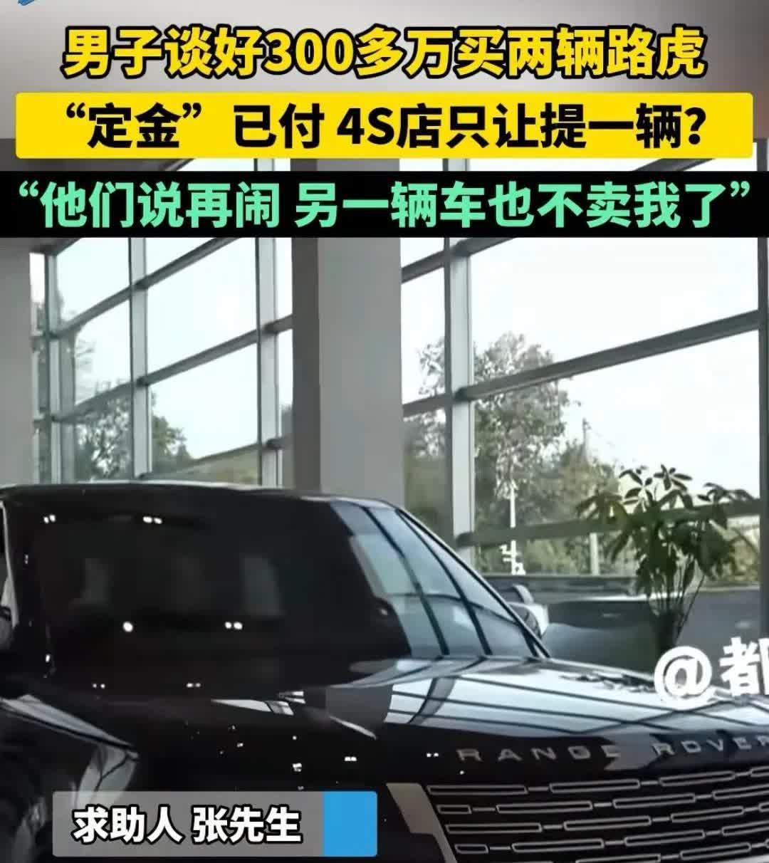 河南郑州,男子到一家很大的车店,花了300多万,买了两辆路虎,家里摆了十几桌酒席,亲朋好友正等着他提车回家,不料车店反悔了,只给他一辆,另外一辆不卖了,男子钱都交了,却提不到车, 他非常的气愤,便去讨说法。车店说:你要是闹,另一辆也不卖给你! 在河南郑州,张大哥辛苦多年,好不容易攒够了钱,打算一次性买两辆路虎车,每辆都价值150多万,这样多有面子啊!他还特地跟家里人说好了,要摆个十几桌的酒席,把亲朋好友都请来,一起庆祝他买新车。张大哥兴冲冲地连夜赶路,还在酒店住了一晚,第二天一早就去了车店,准备提车回家。 可谁想到,车店的人跟他说,只能提一辆车,另一辆不卖给他了。张大哥一听就急了,他钱都已经付清了,合同也签好了,怎么能这样呢?他说自己愿意加价,也愿意等,就是不想在亲朋好友面前失信。可车店的人态度特别强硬,跟他说:“你要是再闹,另一辆也不卖给你了!” 张大哥觉得特别委屈,好像被当众羞辱了一样。没办法,他只好去找调解员帮忙。车店最后答应从别的地方调辆车来给张先生。张先生也说,要是商量不好,他就准备用法律手段来保护自己的权益了。