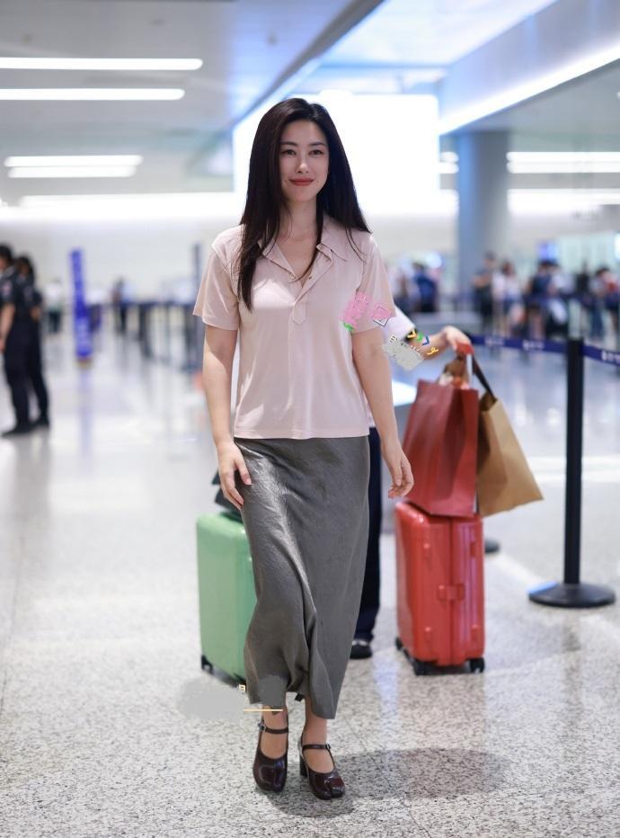最近朱珠现身上海机场,她这次搭配的很漂亮,气质也不错,看起来像个靓丽的少女。 朱珠上身穿粉色T恤,下身搭配灰色的裙子,尽显洒脱迷人的魅力。 她的身材是相当不错,看上去很有大牌明星范儿,真的是好迷人。 朱珠脚踩黑色高跟鞋,还留着超美的披肩长发,显得很有浪漫气息。 朱珠的妆容也很精致,不得不说她天生就有大牌明星魅力,就算是搭配简洁,也好时尚。