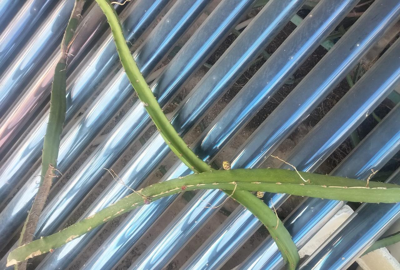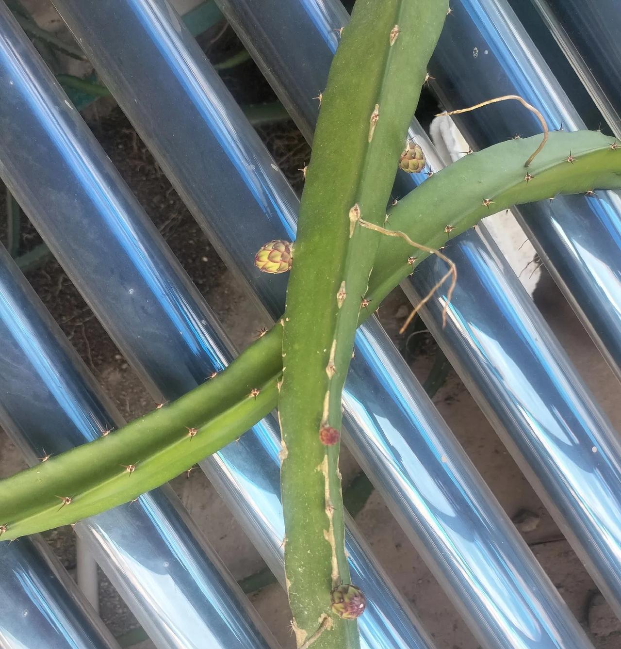 今天终于看到房顶的火龙果开花了。 十年前,家里盖房子,房子盖好后,我在楼顶栽了一棵火龙果。 我每次去看它,都不开花,几年过去,还是没有开花结果,我怀疑我栽的是仙人掌,不是火龙果,就把它当做风景来看吧,也不想理它了。 今天我上去无意间发现它开花蕾了,我左看右看,也不像是火龙果花,那像什么?