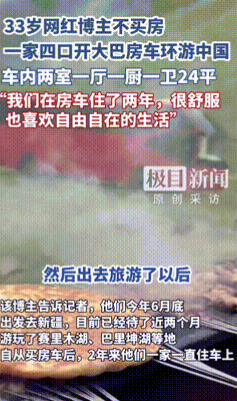 “有钱就是爽!”33岁女子没选择买房,而是花20多万元买了辆24平的二手大巴,然后改成了房车,一家四口全年都生活在里面!一家人从广东自驾4600多公里,到新疆环游,仅仅30天就花了14860元!网友:各有各的活法,开心就行! 这位妈妈是个小有名气的短视频博主,平时就喜欢用视频记录一家人的移动日常,她一开始冒出这个念头,是因为觉得大城市的房价实在太高,不想把整个家庭压在一套房子上。 正巧看到有旧大巴转让,空间够大,她就动了心思,随后自己规划布局、找人施工,最终把这辆大巴变成了功能齐全的移动住宅,两个卧室、客厅、厨房、卫生间全都有,日常家电也配齐了,用电靠太阳能,完全能自给自足。 平时出门买菜、附近转转,他们就开一辆小电动车,灵活又方便,而这次新疆之行,一家人边走边玩,去了不少地方,看湖逛山、体验风土人情,一个月下来花费却控制得特别好,这样的生活方式他们已经坚持了两年,不但没觉得不方便,反而越来越喜欢。 不用还月供、没有固定的地点束缚,两个孩子也跟着一路看世界,虽然也有人疑问孩子上学怎么办,但他们早就想好了,等到那个时候,就找一个气候宜人、生活节奏舒服的城市长住下来,车停在哪里,家就在哪里。 不买房、不住小区,却实现了许多人“在路上”的梦想,这种活法或许不适合所有人,但它提供了一种不一样的思路,那就是家和自由,未必只能二选一。 评论区聊聊,你会不会也想试试不一样的生活?如果是你,你愿意用一套房,换一辆可以随时出发的房车吗?