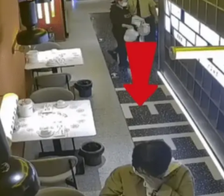 就在紧张的气氛蔓延开来的同时,一名穿着黑色制服的服务员快步走了过来。他显然在巡查中注意到了不对劲的情况,眼神瞬间锁定了女顾客。