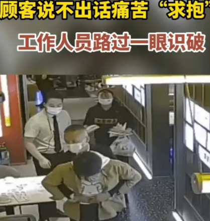 快抱我”!陕西西安,一女顾客在店里吃饭,突然走向一服务员,痛苦地示意服务员抱她,服务员不解,但还是抱起顾客掂了几下,顾客仍很难受,此时一名黑衣服务员走过来,立刻识破了危险!