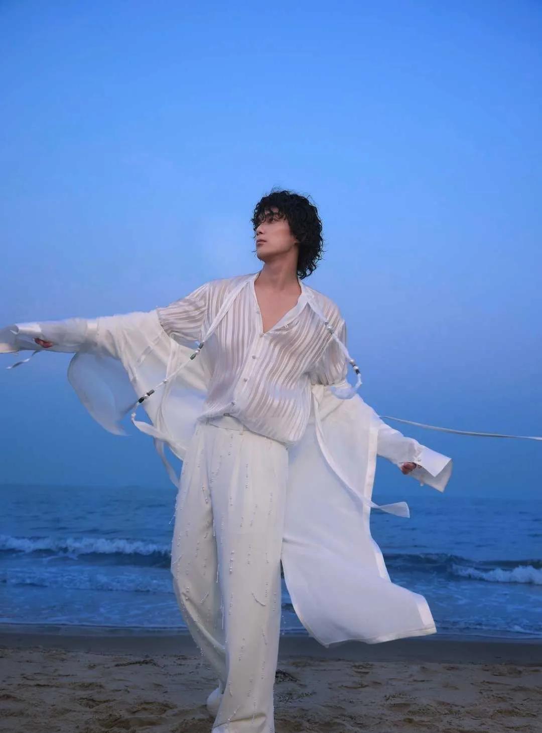 最近吴磊一组海边大片刷爆社交平台,湿发搭配透视白衬衫,从海浪里走出来像刚“打捞”