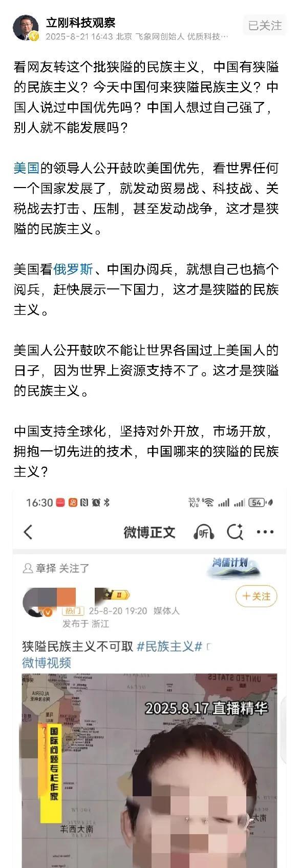 项立刚痛批动不动就说中国人狭隘民族主义的,中国人从来没有对对外说中国优先,从来没有说只有中国能发展,其他的国家不能发展,我们都是平等对待每个国家,不论这个国家是大是小,我们一直都是说人类命运共同体,而且还积极搞一带一路,帮助小国家或者落后的国家修建基建,让它们可以好好发展,我们去哪里都是寻求共赢,不像某些国家那样以大欺小地去掠夺小国家!项立刚批得太对了,国内某些专家怎么好意思开口说中国狭隘民族主义!