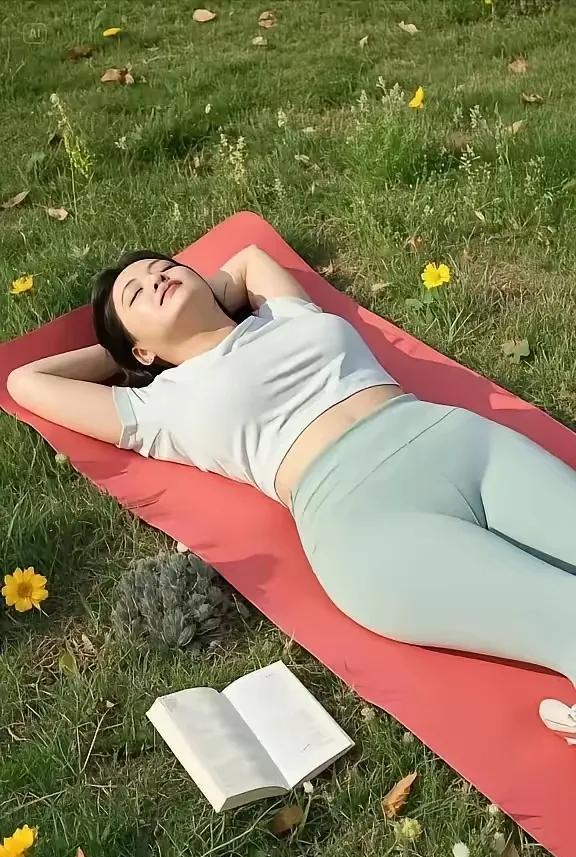 清空自己 阳光如金色薄纱,轻柔铺满茵茵草地。她躺在红瑜伽垫上,似与自然相融。浅灰