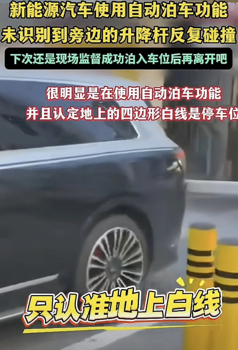如今的智能驾驶就是个笑话,哪怕是站在金字塔顶尖的第一梯队,也有识别错误的时候,8月20广东深圳,某新能源汽车使用自动泊车功能,未识别到旁边的升降杆反复碰撞,而且车内没有驾驶员,汽车反复进退调整位置,并且认定地上的四边形白线就是停车位,所幸旁人及时避开,没有发生伤人事件,难道这就是号称所谓最好的智驾吗?那其他的岂不是更拉垮?