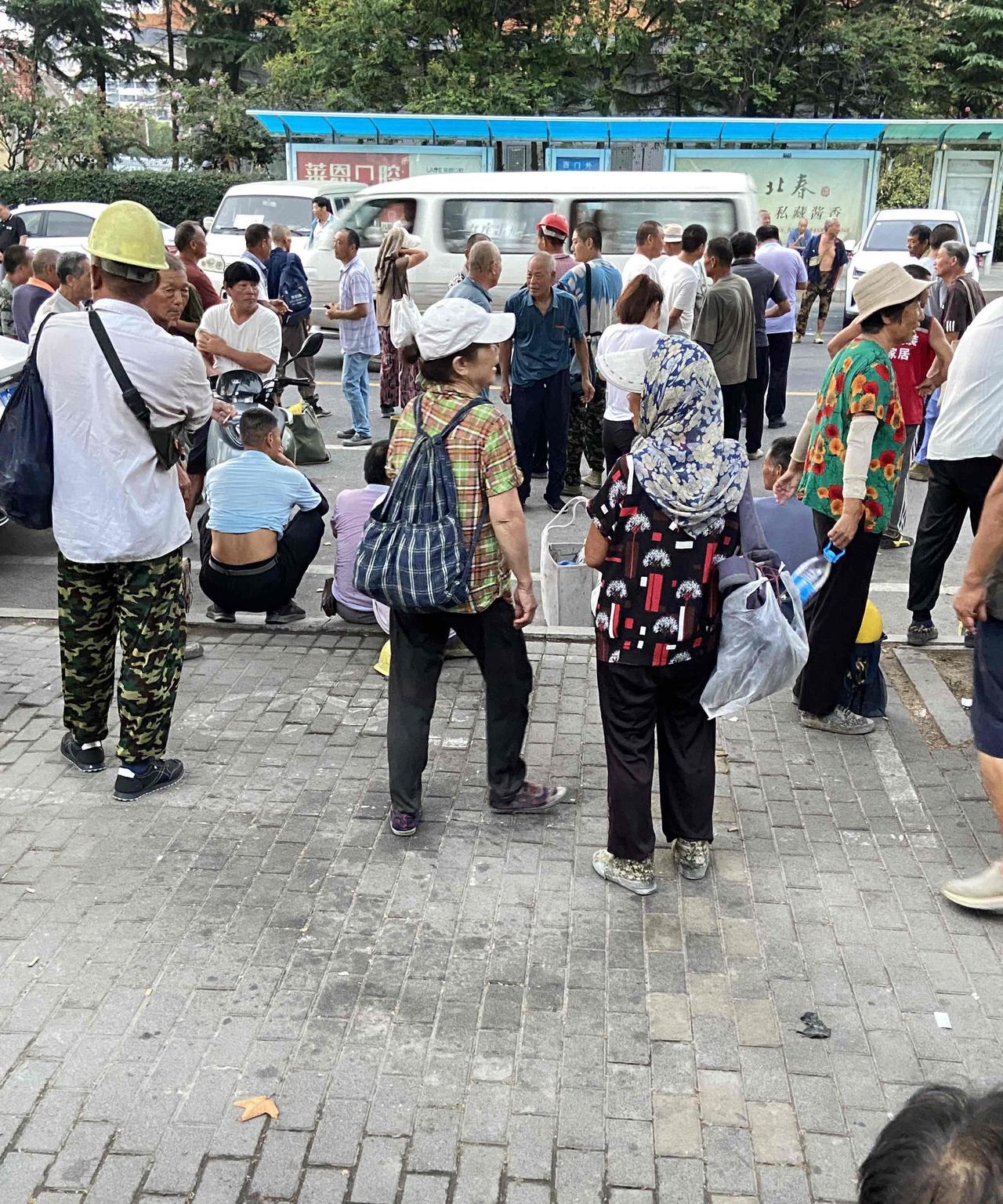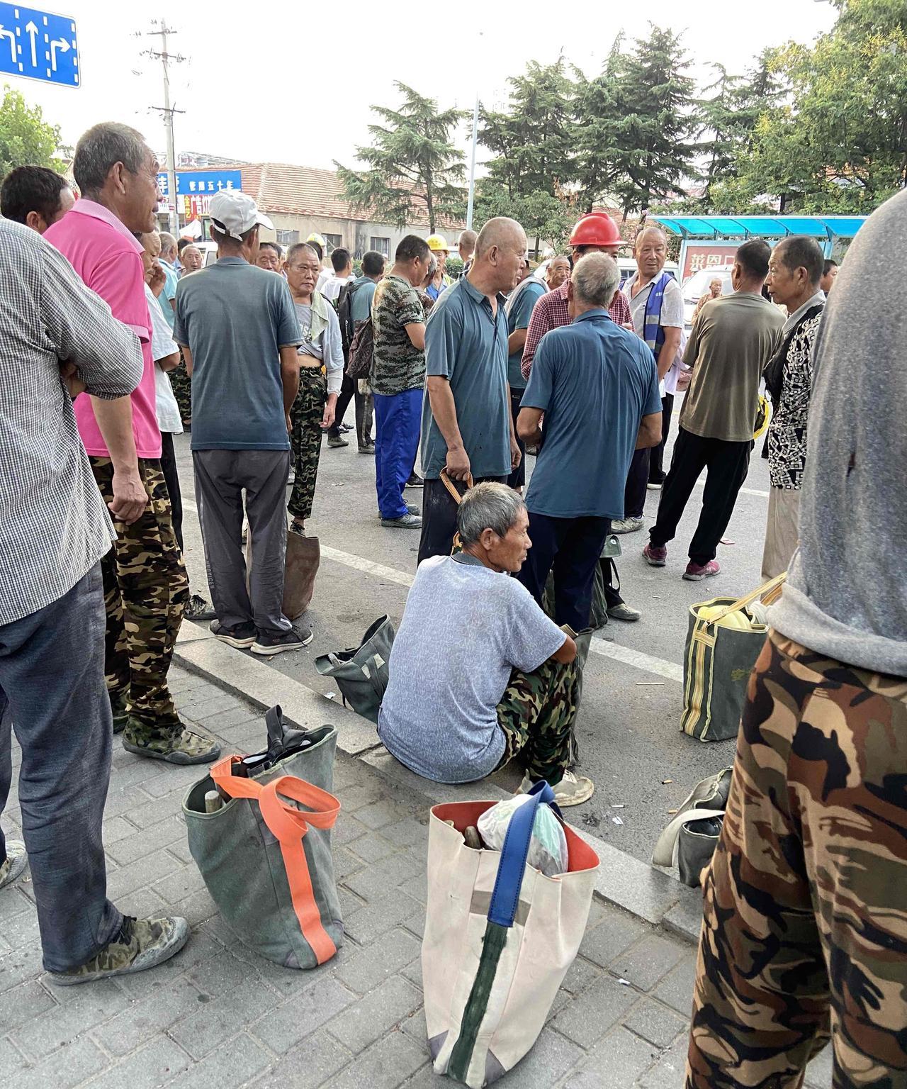 今天是8月22日,清晨五点多山东黄岛区劳务市场,马路边和往日相比市场里的人稀稀拉