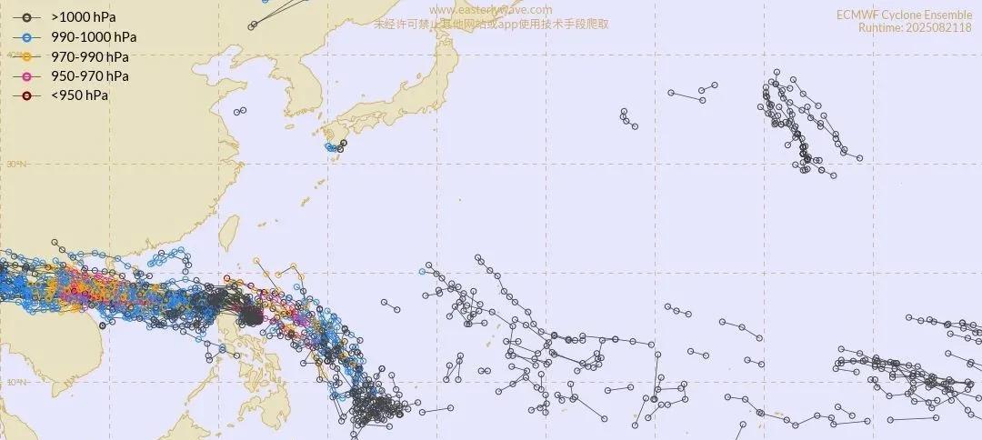 台风“剑鱼”即将生成,海南及南海海域本周周末有风雨 位于菲律宾东北方的热带扰动90W正在持续发展,日本气象厅于今天上午对其发布GW,预计它将在未来24小时内加强为今年第13号台风“剑鱼”,并于8月23日进入我国南海海域。进入南海后,它将在副高引导下继续西行,强度逐渐加强,最强可达强热带风暴级或台风级。目前预计,其大概率掠过海南南部近海,受其影响,预计8月24日和25日海南有明显风雨,需留意。