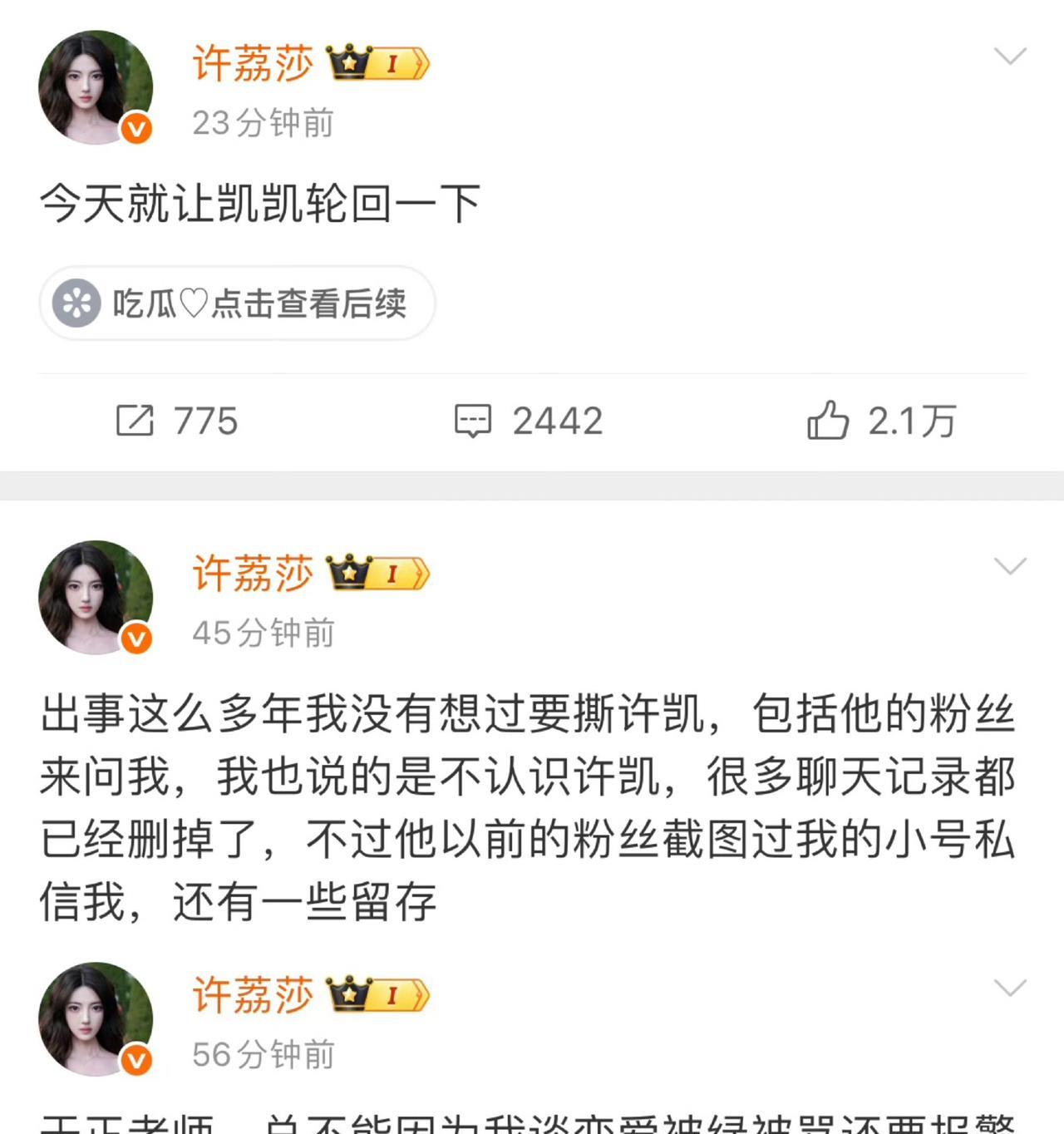 许荔莎先开麦: “今天就让凯凯轮回一下。” 于正回应: “我被资本做局了。” 许凯工作室火速声明: “哥哥目前单身。聊天记录伪造。已取证,准备起诉。” 以往都是只有他撕别人、内涵别人、明里暗里嘲讽别人。 这回头一回吃瘪,估计气得原地翻白眼。 三方各执一词。 你,信谁?[吃瓜群众][吃瓜群众][吃瓜群众][吃瓜群众][吃瓜群众][吃瓜群众]
