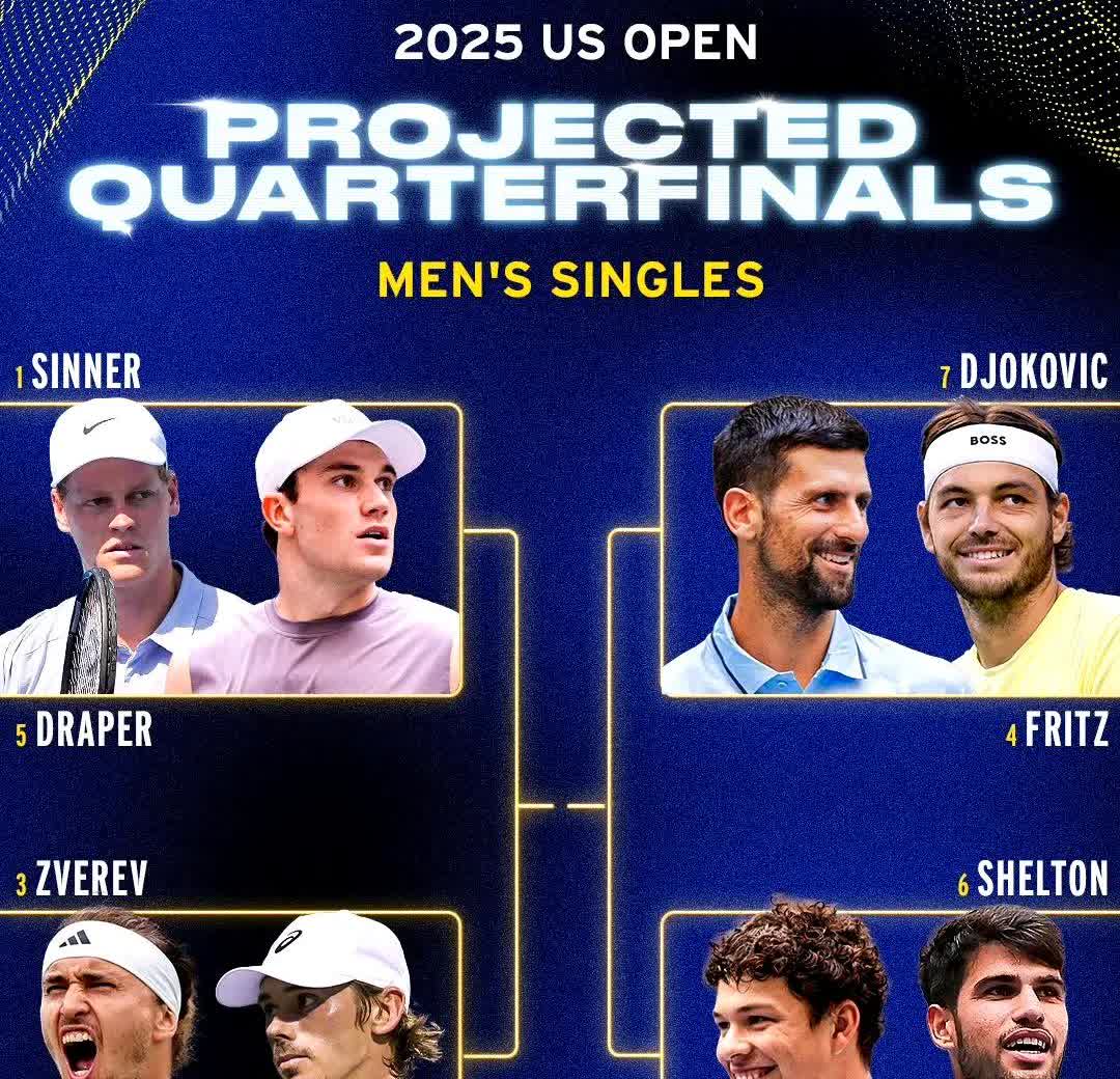 德约科维奇和阿尔卡拉斯在一个半区,法网和温网之后半区避开了辛纳。 德约这次的签