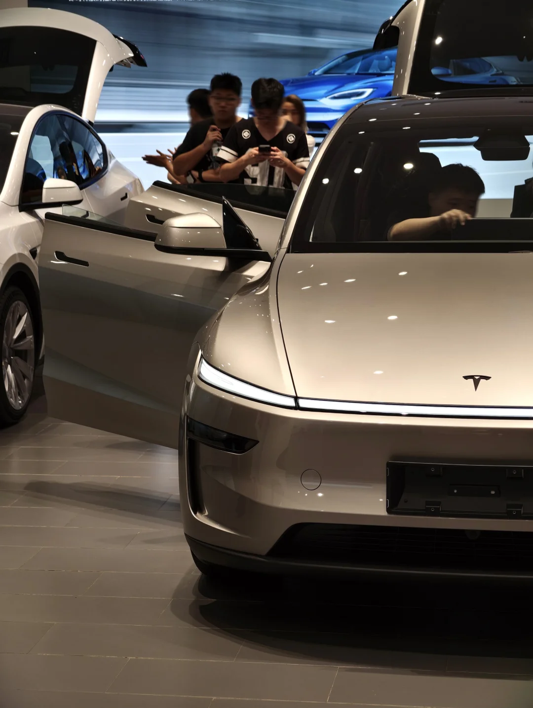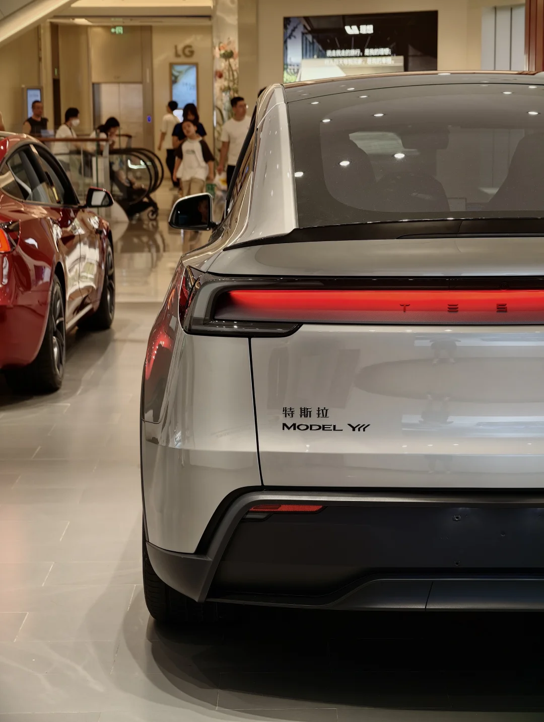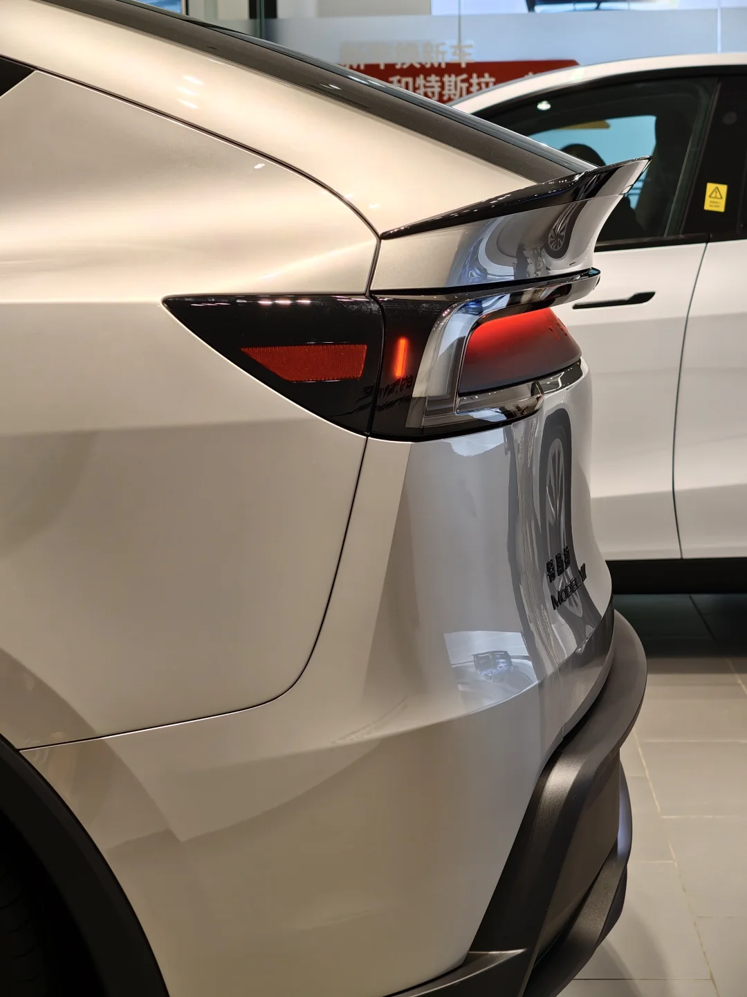 到店随拍 Model Y L。不是说只加长十来厘米吗?怎么实车一看,多了点 Model X 的味儿。这套鼠标美学真是越做越统一。 - 这台“加大号鼠标”的配色带点黑金调,挺耐看的,车标黑化,尾部多了个小尾翼(塑料件),质感和运动感同步提升。我觉得深色更友好,尾部漫反射区与 Logo 过渡更自然 - 你觉得这台 Model Y L 怎么样?如果让你选,会不会搞里头?