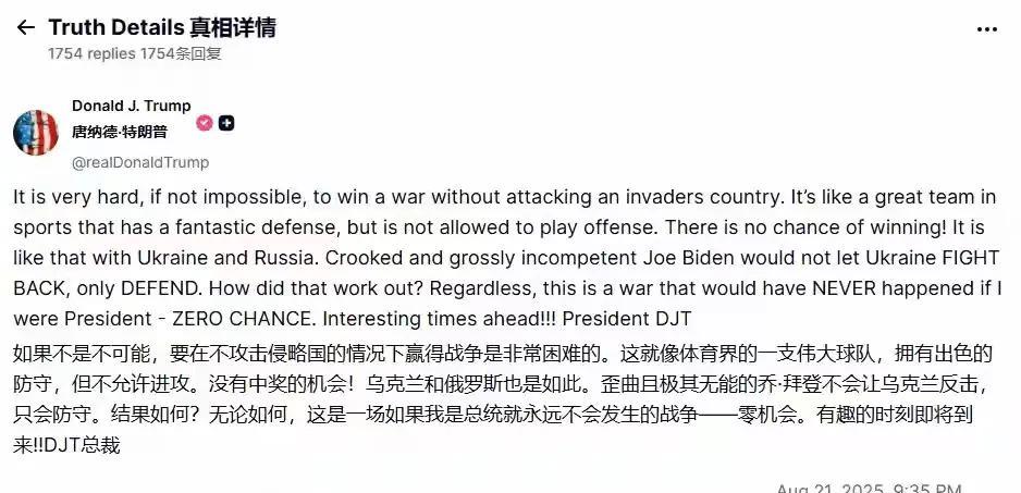 特朗普疑似怂恿乌克兰“进攻侵略国”释放什么信号? 第一,说明此前特朗普“打满分”的普特会已经失败。阿拉斯加会晤和华盛顿会谈之后,特朗普发现自己可能又被耍了,事实上俄乌双方根本没有让步和谈的诚意,所谓结束战争只是自己一厢情愿罢了。 第二,通过此举继续施压俄罗斯,促成双方元首直接面谈,因为特朗普发现其实普京根本就不想和泽连斯基直接面谈,暂时答应仅仅是策略并且是照顾自己面子而已。 第三,施压泽连斯基,你小子不是寸土不让吗?有种你就继续打啊! 事实上,特朗普变招后,最难受的不是普京,因为美西方对乌克兰的武器限制早就解除了,乌克兰在库尔斯克的失败足以证明乌克兰不会对俄罗斯本土构成大的威胁,倒是泽连斯基进退两难,打又打不赢,输又不想输!