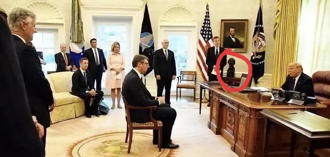 特朗普会见欧洲领导人,除了7把小椅子排排坐之外,还有三个亮点。 一是,各位领导人开会时都没有带手机,但是特朗普桌子上摆了两把。而且特朗普的手机也是扣着摆的,和我们平时开会一样。不知道大家为什么都是扣着摆。 二是,武济奇来访时,特朗普有一座黑头像雕塑,是摆在墙边的,现在摆到了小桌子上。 如果泽连斯基不小心碰倒,要赔吗?赔的起吗? 三是特朗普有一盒的笔,但是没有尺子和橡皮。