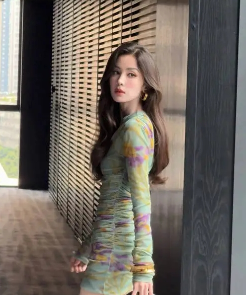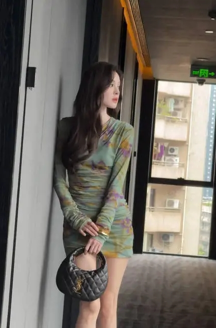 娜扎身穿印花连衣裙秀曼妙身姿。